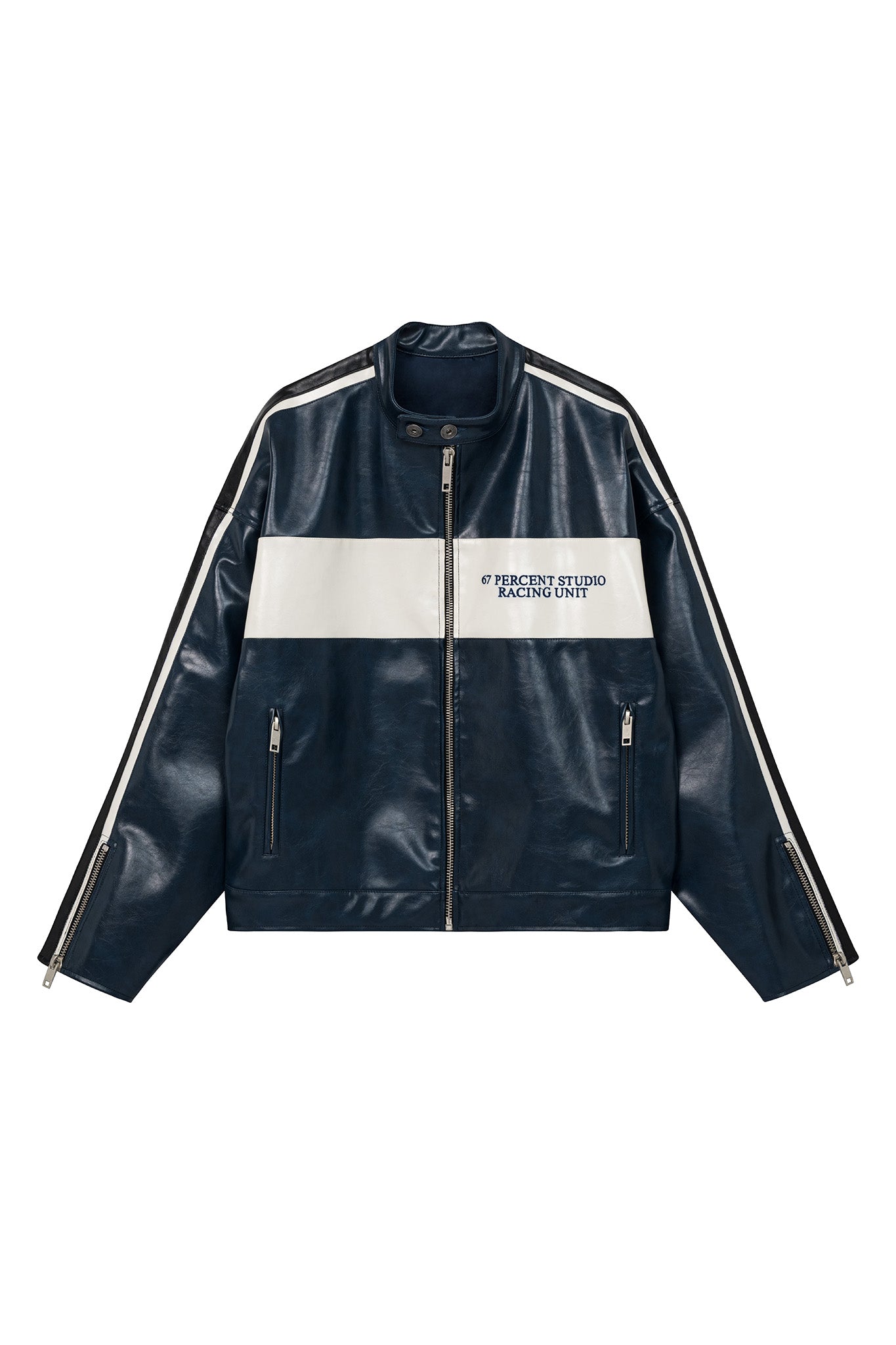 - Classic fit racer jacket in heavy faux leather